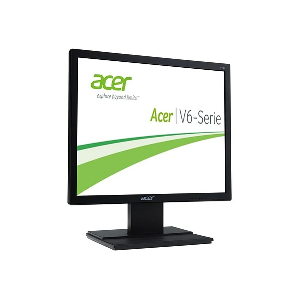 This Acer 17″ monitor comes with speakers. It has an LED backlit feature along with resolution of 1280 x 1024 pixels, which helps in better display of images. This is further enhanced with a contrast ratio of 100000000:1 and brightness 250 Nit. This Acer V176l LED Monitor has a quick response time of 5 ms. The package includes V176L LCD monitor, 1 x VGA cable and power cord. The Acer 17″ Monitor has adjustable display angle with horizontal viewing angle of 170 deg. and vertical of 160 deg. It includes VGA input and is available in back. It requires power supply of 110 VAC/220 V AC and operating power consumption is 13 W. It supports 16.7 million colors and has a Green compliance certificate along with EPEAT Gold and TCO certification.