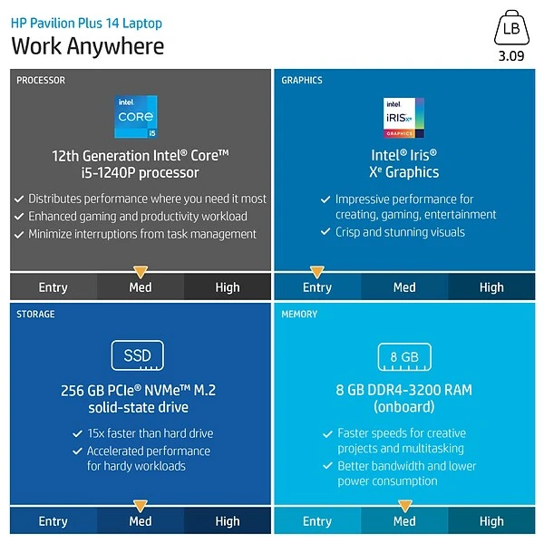 - Intel Core i5-1240P 12-core processor with up to 4.4GHz speed and 12MB cache memory
