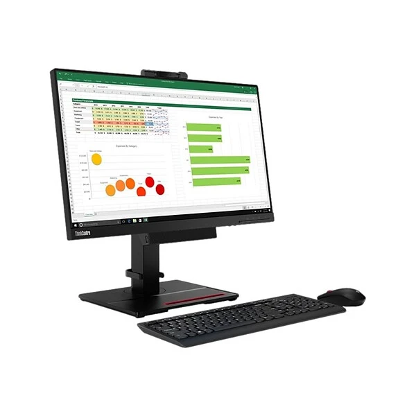 The TIO24 Gen 4 is compatible with Gen 2 and up ThinkCentre M Series Tiny PCs, Nano, and Thin Clients. Simply tuck the model of your choice into the back of the display, and within seconds you’ll have a modular solution—not to mention deployment cost savings. You’ll even enjoy improved performance from your PC units as TIO24 Gen 4 is equipped with a new back cover that improves heat dissipation. Keep your current PCs and all of their data and operating systems, while upgrading to the TIO24 Gen 4’s impressive features. Because they are separate modules, the PC and monitor can be changed independently of one another—unlike traditional all in one systems, where the CPU is integrated with the display. With its three-sided borderless 24 inch FHD display, the TIO24 Gen 4 monitor is a crowd pleaser. It keeps your work area neat and tidy with a higher lift height, saving 18% more space than the previous generation, as well as tilt, pivot, and swivel to maximize comfort. Even store your mobile phone in the convenient phone holder, while the side USB-A 3.2 port provides a speedy connection for any peripherals you need to utilize. Collaborate like a boss with the TIO24 Gen 4. It’s equipped with an improved 1080p webcam with optional RGBIR, which provides brighter resolution even in poorly lit rooms. So, colleagues and clients get a great view of your face during video calls, night and day, like they’re in the room with you. It’s also equipped with a dual microphone for VOIP so your colleagues can hear you clearly.