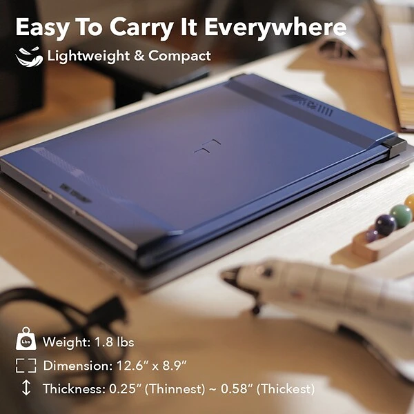 Never worry about not having enough to space on your laptop screen to see everything you need for work or pleasure with the Mobile Pixels DUEX Max. It’s a light, extended dual-screen laptop solution, allowing you to double your screen space. Utilizing the Blue DUEX Max 14.1 in. portable LCD, you can easily convert your single laptop displays into 2 LCD screens total.