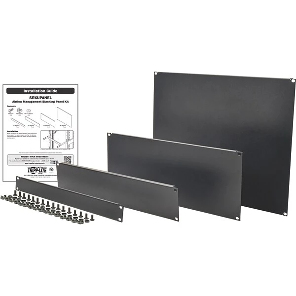 The SRXUPANEL Blanking Panel Kit fills unused spaces in your standard 19-inch rack. Not only does this give your rack a sleek, clean look, but it also protects your valuable rack equipment by improving airflow and cooling efficiency. By closing off unused rack openings, these blanking panels prevent hot air from recirculating through open spaces. This reduces operating costs, improves performance and provides longer lifespans for your equipment. Constructed from heavy-duty cold-rolled steel in a durable black powder-coat finish to match most rack enclosures, the SRXUPANEL includes four blanking panels in different sizes: 1U, 2U, 4U and 8U. This gives you the flexibility to close off up to 15U in rack space in different configurations as needed. Just attach the desired panels to the rack’s front vertical mounting rails using the included hardware.