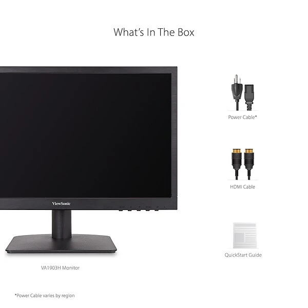 - INCLUDED IN THE BOX: VA1903H LCD Monitor, Power Cable, and VGA Cable