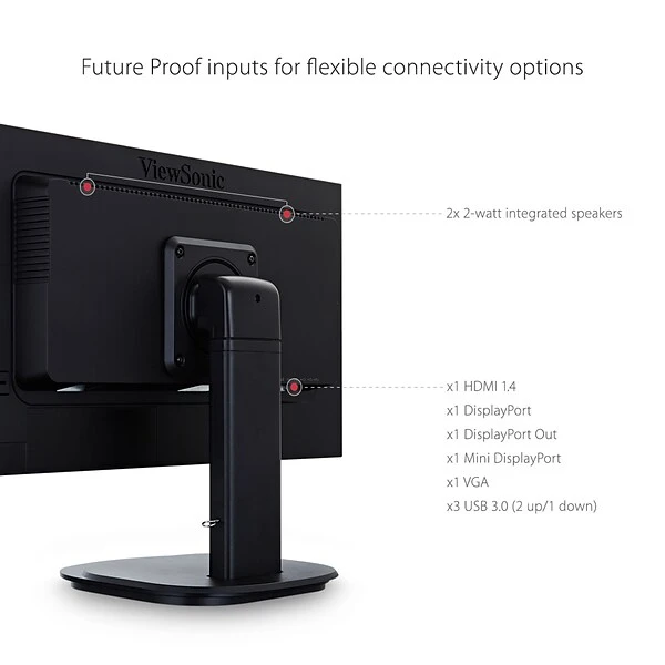 With future-proof connectivity and advanced ergonomics, the ViewSonic VG2249 is a productivity-boosting monitor perfect for corporate, government, and education environments. Designed with both a DisplayPort input and output, this monitor delivers easy, single-cable daisy-chaining of multiple monitors for increased productivity. With SuperClear MVA panel technology for wide-angle viewing, and a 20M:1 dynamic contrast ratio, incredibly sharp images and vivid color remain consistent across multiple daisy-chained screens. For maximum comfort and a customized fit, a robust fully ergonomic stand gives you tilt, pivot, swivel, and height-adjustable options. Additional connectivity options include VGA, HDMI, and Mini DisplayPort so that you can connect to a variety of high-definition and analog devices today and tomorrow.