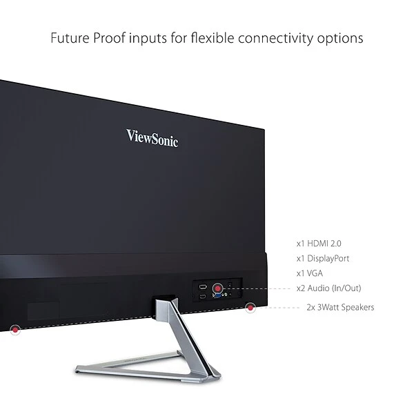Style and substance go hand-in-hand with the ViewSonic VX2476-smhd 24 (23.8 viewable area) Full HD monitor. SuperClear IPS panel technology, wide viewing angles, and best-in-class screen performance deliver outstanding visual clarity great for vibrant entertainment and gaming. A premium ID includes an ultra-slim profile, unique desktop stand, and a sleek edge-to-edge frameless screen, that when combined with vivid 1920×1080 resolution and dual speakers, deliver an immersive viewing experience for home entertainment and multimedia applications. Versatile HDMI, DisplayPort, and VGA inputs keep you connected to your favorite devices, while the modern, flush-mount frameless bezel design makes a standout statement in any home.