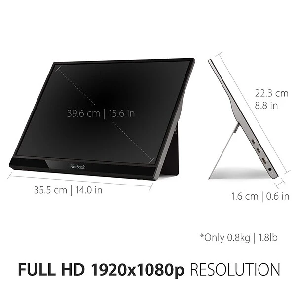 - ULTRA-PORTABLE MONITOR: Weighing just under 2 lbs., this 15.6-inch portable monitor can be easily packed and taken with you wherever you go