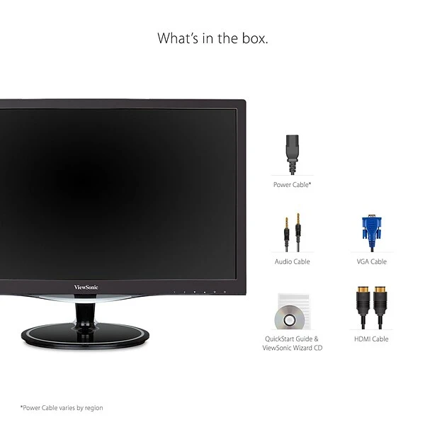 - Package contains Power Cord – Audio Cable – VGA Cable – HDMI Cable – Quick Start Guide